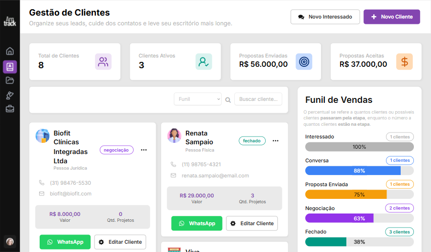 4. Consigo personalizar a ArqTrack com a identidade do meu escritório?